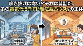 安く賢く引越しする方法吹き抜けは寒い?それは昔話だ。冬の電気代5千円「魔法瓶ハウス」の正体