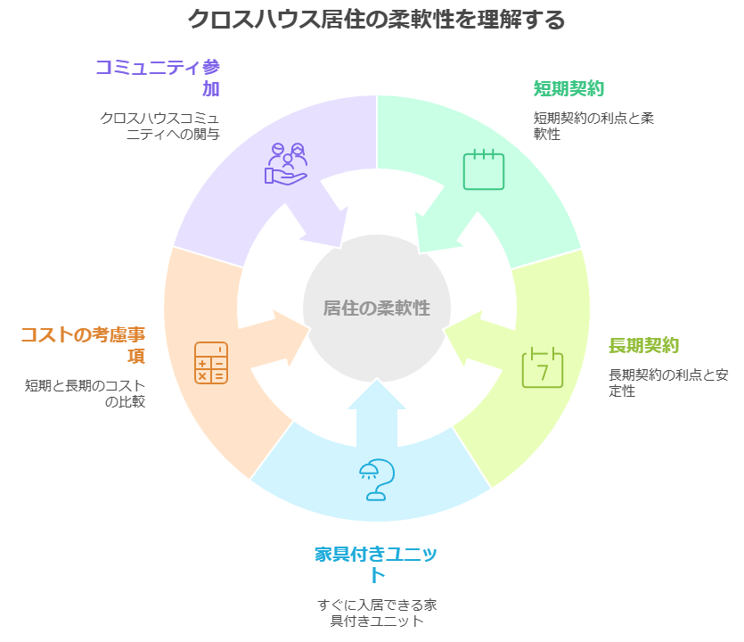 クロスハウスなら、そのような診断は不要です。多様な物件タイプと、柔軟な契約プランで、あなたのニーズに、必ず応えられるでしょう。まるで、オーダーメイドのスーツのように、あなたにぴったりの物件が見つかります。