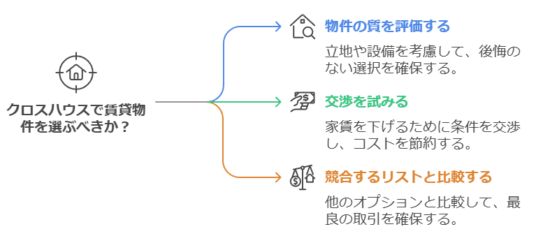 もう、一人で悩む必要はありません。クロスハウスのスタッフに、全てを任せて、安心して物件選びを進めてください。そして、理想の住まいを、必ず見つけられると信じています。