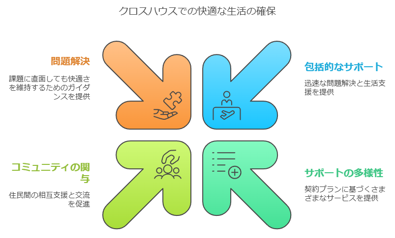 クロスハウスには、入居者専用のサポート窓口があります。まるで、迷子の子猫を保護してくれる、優しいお巡りさんのような存在です。