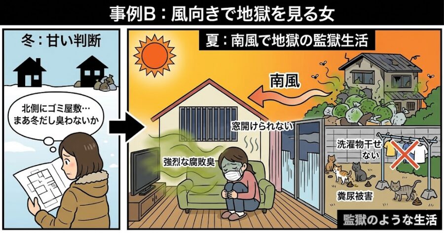 🗑 事例B:風向きで地獄を見る女