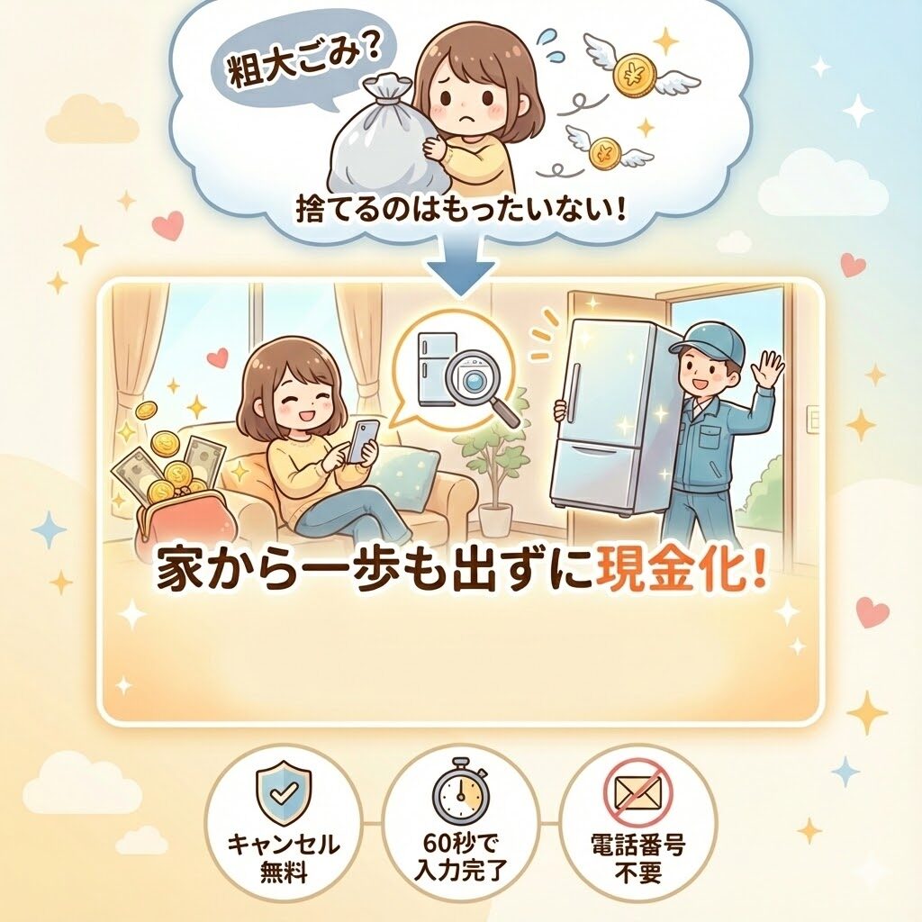部屋の隅で場所を取っているその冷蔵庫や洗濯機が、明日にはスッキリとなくなり、しかも数千円〜数万円の「お小遣い」に変わるかもしれません。