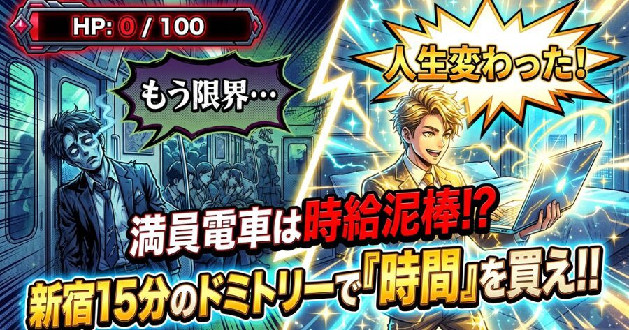 これから話す内容は圧倒的な低コストで「新宿・渋谷まで15分」の立地に住み、1日往復2時間の自由時間を買い戻す『戦略的ドミトリー生活』をご提案しよう!