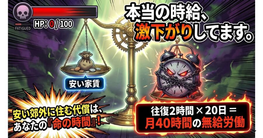 毎日往復2時間以上を「無給の労働」として拘束されていると考えたとき、あなたの本当の時給(価値)は驚くほど低く見積もられているという恐ろしい事実に気付くはずだ!