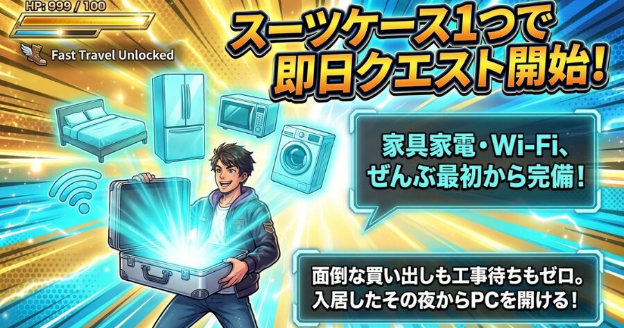 家具家電・Wi-Fi完備!スーツケース1つでその日の夜から新生活