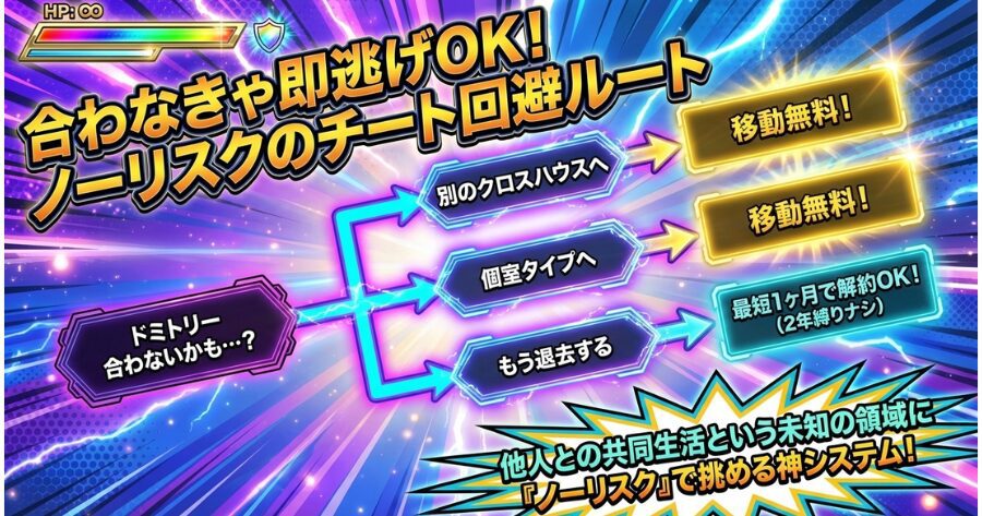 「ドミトリーはきつい?」合わなければ無料で物件移動できる逃げ道